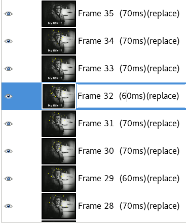 Frame delay: In milliseconds. In the format (80ms). (Want to make a peek-a-boo? Make this value very long for the first frame.)