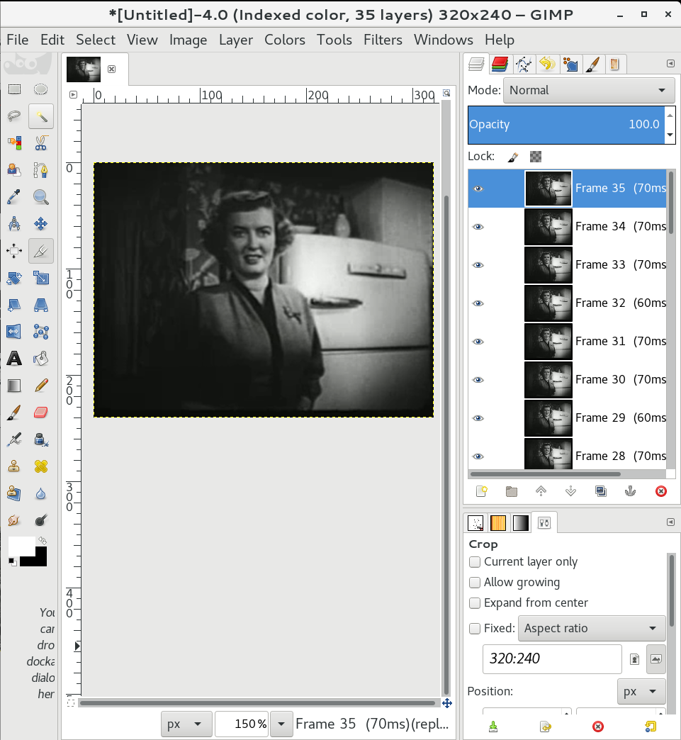 Probably the most common form of animated GIF. Frames are captured frame-by-frame and reconstructed as frames in an animated GIF.