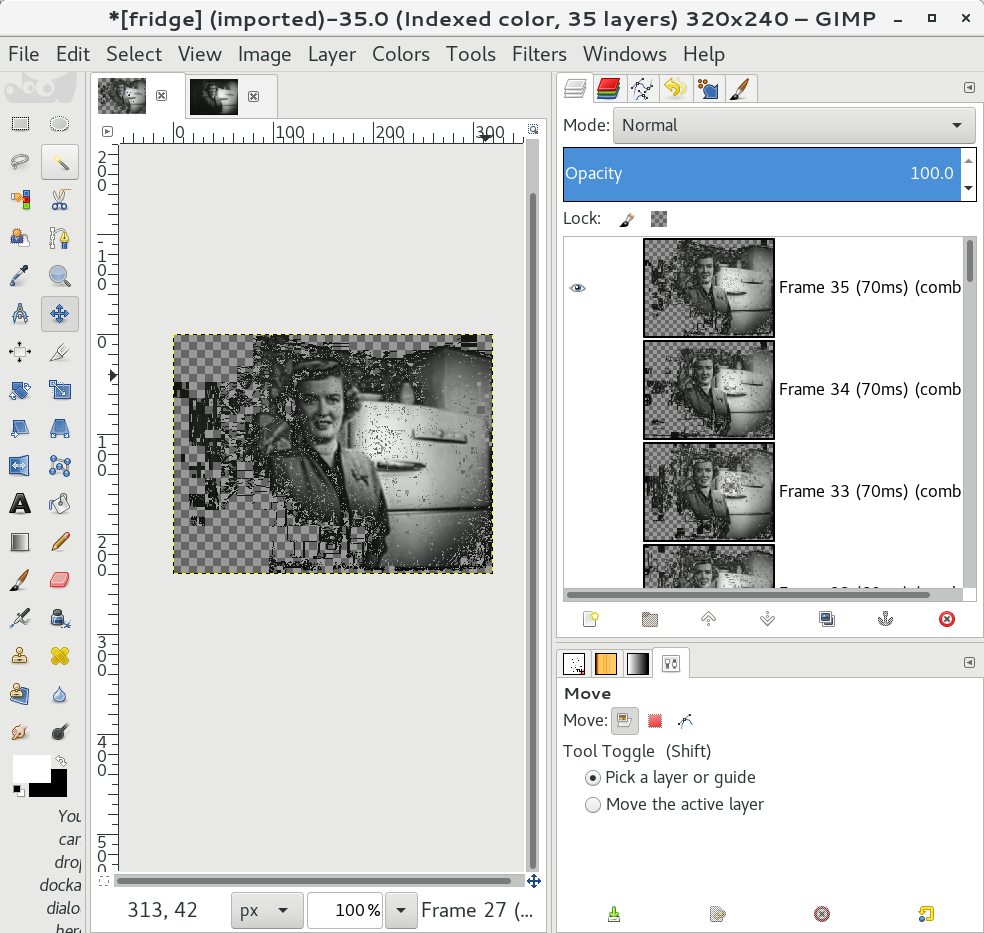Why are there holes in the image? Try Filters > Animation > Unoptimize.